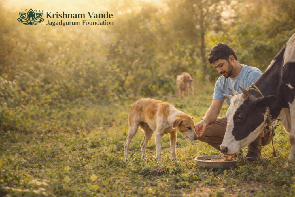 Animals are an integral part of our ecosystem and deserve love, care, and protection. Unfortunately, many stray and injured animals suffer daily due to hunger, neglect, and lack of medical support. At Krishnam Vande Jagadgurum Foundation, we are committed to providing food, shelter, and medical care to animals in need. Through rescue efforts, feeding drives, and awareness programs, we strive to create a compassionate environment where every animal is treated with kindness and dignity. Our goal is to build a society where humans and animals coexist peacefully and every life is valued.